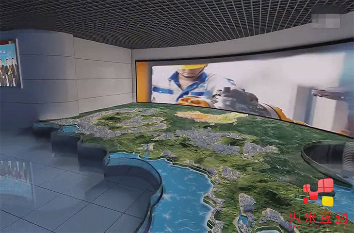 立體數字沙盤又稱為立體電子沙盤,是屏幕+實體沙盤模型+燈光+語音解說的結合體。屏幕中的內容是利用三維動畫技術所制作而成再利用投影機投射到屏幕中,想宣傳片樣,再結合實體沙盤模型共同展現。在屏幕中的三維內容展現時,實體沙盤模型利用燈光效果來回應所展現的內容,與它融合在起。立體數字沙盤有兩種方法實現互動功能,是利用觸控體機來實現;二是在實體沙盤模型中安裝感應設備,用激光筆來點擊沙盤實體互動。